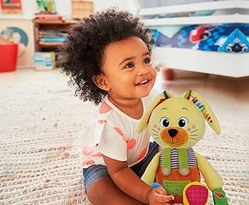 Peluche douce et colorée pour bébé dès la naissance. Stimule les sens et apporte réconfort et tendresse.