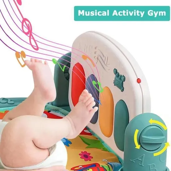 Le Bibi-im Piano Playgym est un tapis d’éveil musical conçu pour stimuler et accompagner le développement sensoriel et moteur des bébés dès la naissance (0 mois et plus). Doté d’un piano lumineux avec de grandes touches colorées, il permet à l’enfant d’explorer les sons et les mélodies en donnant des coups de pieds ou en appuyant avec ses mains, favorisant ainsi la coordination motrice et l’éveil musical.