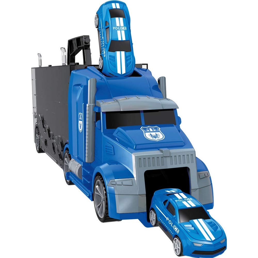 Ce jouet complet comprend un grand camion transporteur, plusieurs voitures de police, un hélicoptère et des accessoires de signalisation pour recréer de véritables scènes d’action et de sauvetage.