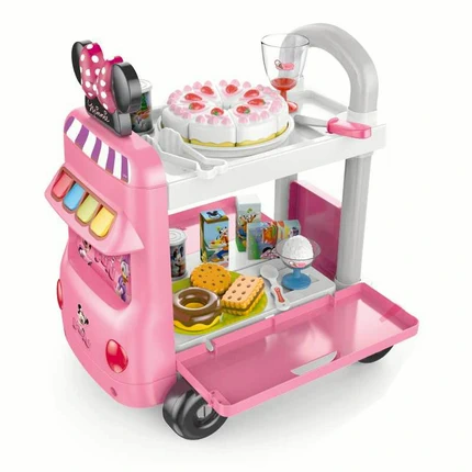 Équipé d’accessoires comme un gâteau factice, une boisson, des boîtes de nourriture et une zone de rangement, il est parfait pour les jeux d’imitation et favorise la créativité, la motricité et les interactions sociales.