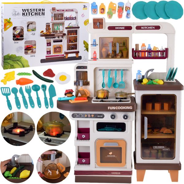 La cuisine pour enfants Western Kitchen est un jouet éducatif et réaliste qui transforme les petits en véritables chefs ! Avec son design moderne et complet, elle propose une expérience immersive grâce à ses nombreux accessoires et fonctions interactives.