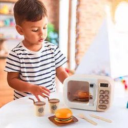 Ce jouet réaliste avec porte transparente et boutons interactifs permet aux petits chefs de faire semblant de réchauffer leurs repas, imitant les gestes des adultes en cuisine.