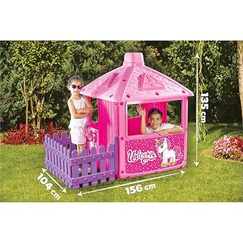 Cette cabane rose et violette, décorée d’une adorable licorne, transforme chaque moment de jeu en une aventure féerique.