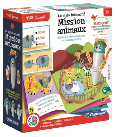 Le jeu Mission Animaux de Clementoni est une aventure éducative où l’enfant suit une histoire, reconstitue un puzzle et associe des cartes pour résoudre des missions ludiques. Avec son stylo électronique interactif, l’enfant peut répondre à des quiz et transformer le stylo en 4 personnages différents pour rendre l’expérience encore plus amusante.