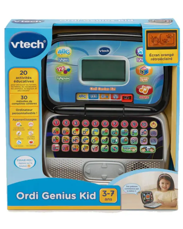 Conçu pour les petits curieux de 3 à 7 ans, ce premier ordinateur éducatif propose une variété d’activités ludiques et pédagogiques : apprentissage des lettres, chiffres, mots, logique et musique.