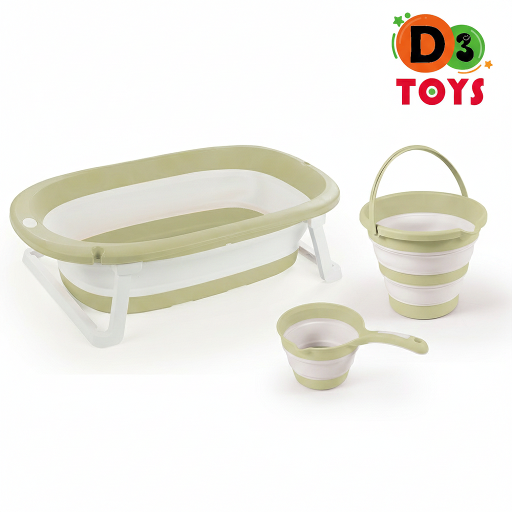 Baignoire Bébé Pliable avec Seau et Louche – Design Compact