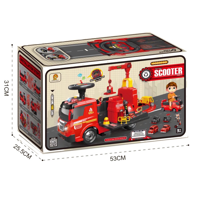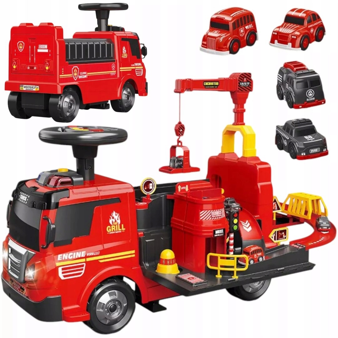 Ce camion de pompier porteur multifonction est conçu pour offrir aux enfants une expérience de jeu immersive et sécurisée. Doté d’un siège confortable, d’un volant directionnel et d’accessoires interactifs, il permet aux petits héros d’imaginer de véritables missions de secours. Le camion inclut une mini-grue, des compartiments de jeu et plusieurs petits véhicules pour enrichir les scénarios. Sa construction robuste et stable garantit un usage sûr pour les jeunes enfants.