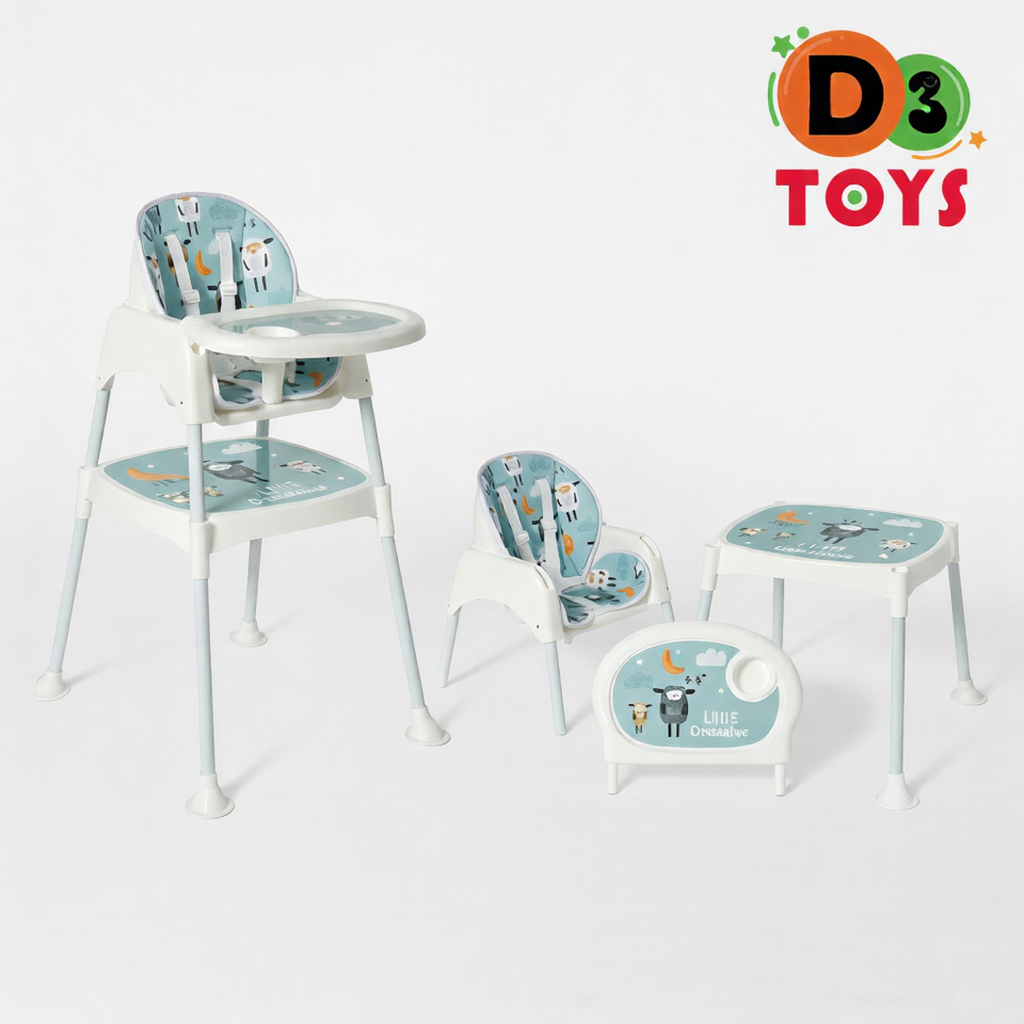 Cette chaise haute évolutive 3 en 1 est conçue pour accompagner votre enfant à chaque étape de sa croissance. Elle peut être utilisée comme chaise haute pour les repas, puis transformée en petite chaise avec table, idéale pour manger, jouer ou dessiner.