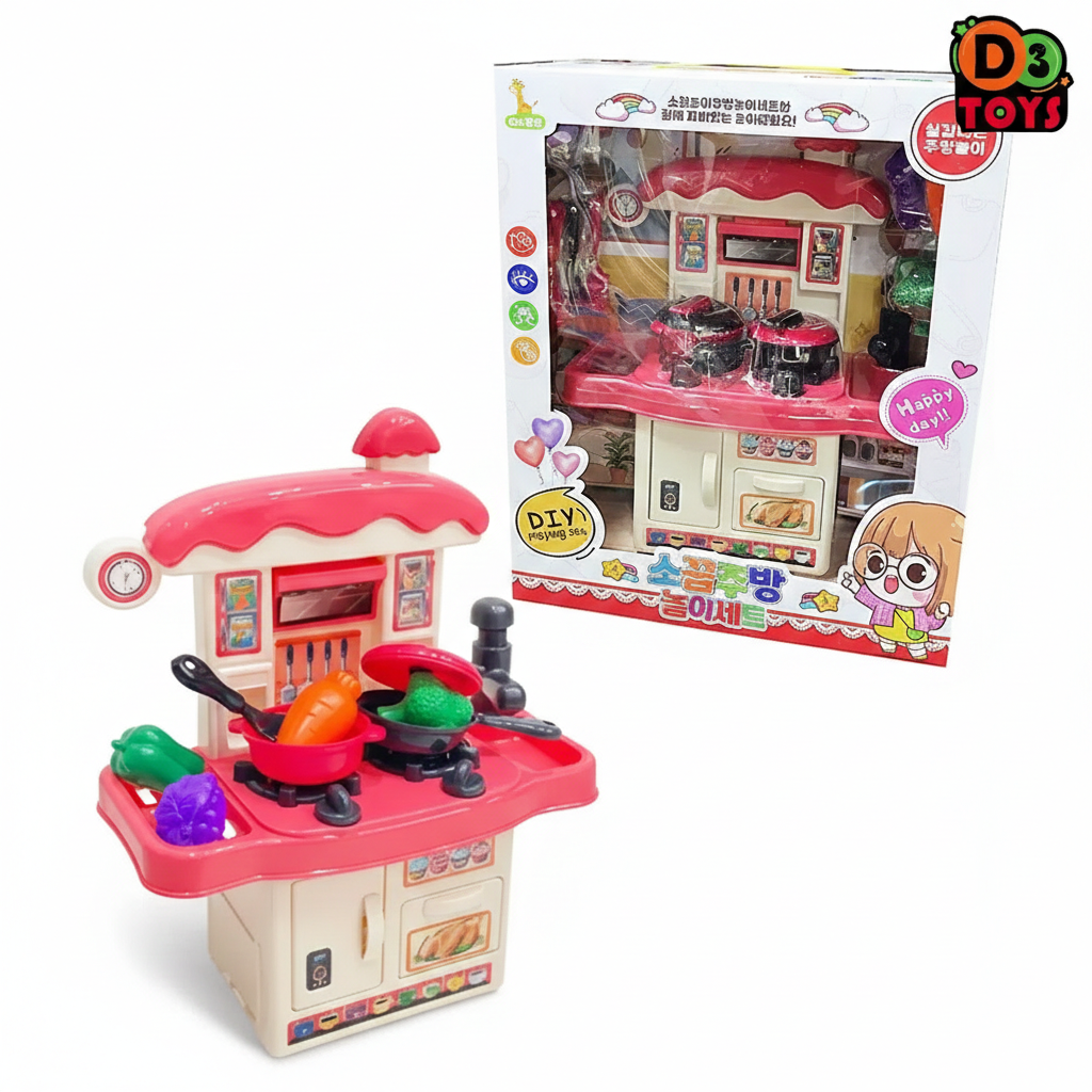 Le set comprend une mini cuisinière avec plaques de cuisson, ustensiles, casseroles, poêle et légumes factices pour créer une expérience de jeu réaliste et amusante. Son design coloré et attractif attire immédiatement l’attention des petits.