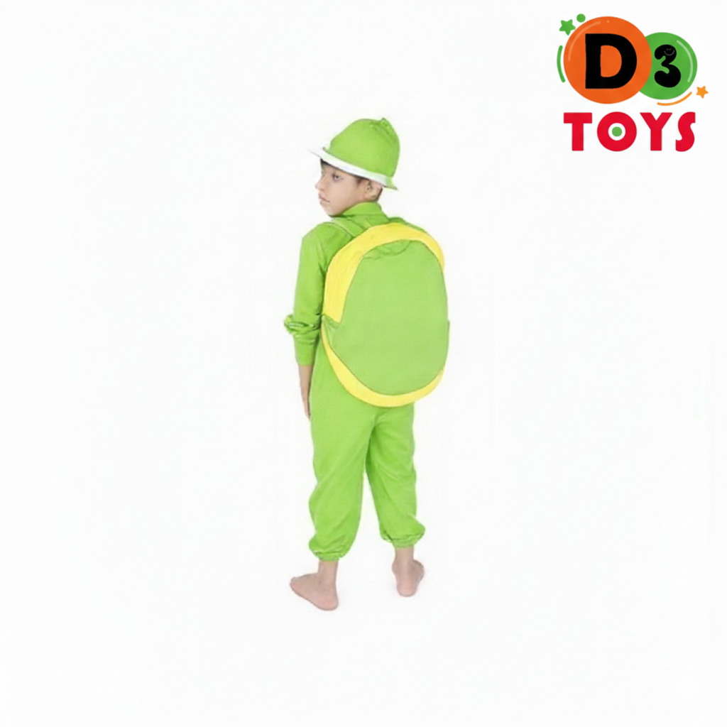 Ce costume se compose d’une combinaison verte confortable avec une grande carapace rembourrée effet 3D portée au dos pour un rendu réaliste et amusant. Léger et doux, il permet à l’enfant de bouger facilement, courir et jouer sans gêne.