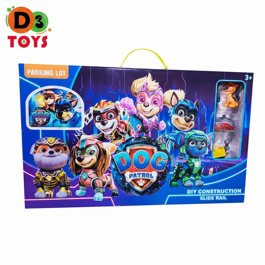 Le Dog Patrol Parking Lot & Slide Rail est un coffret de jeu complet qui permet aux enfants de construire leur propre parking avec rails et toboggans. Inspiré d’un univers de chiens héros, ce jouet combine construction, action et imagination. Les enfants peuvent assembler les éléments, faire glisser les véhicules sur les rails et créer leurs propres missions de sauvetage. Idéal pour développer la créativité, la logique et la motricité fine tout en s’amusant.
