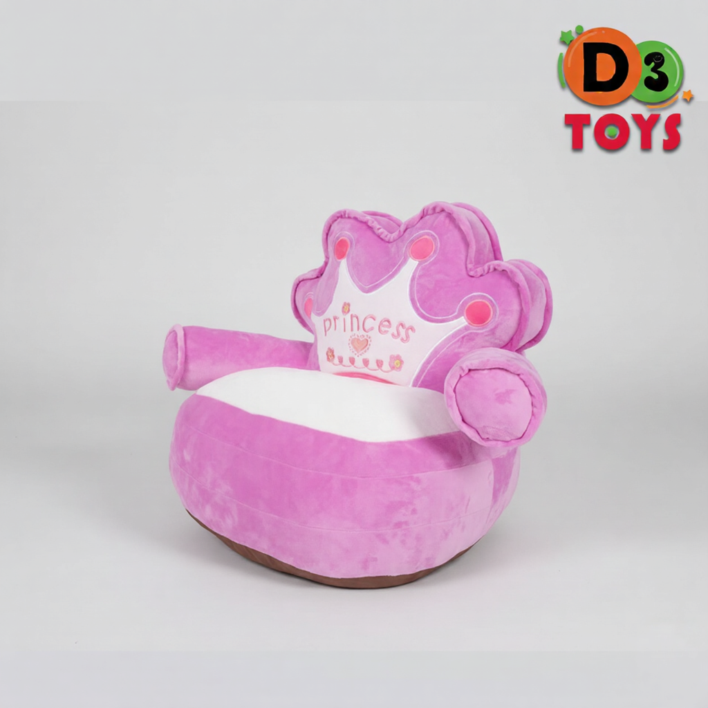 Fauteuil bébé en peluche douce, design princesse rose, offrant confort et maintien pour s’asseoir, jouer ou se détendre en toute sécurité.