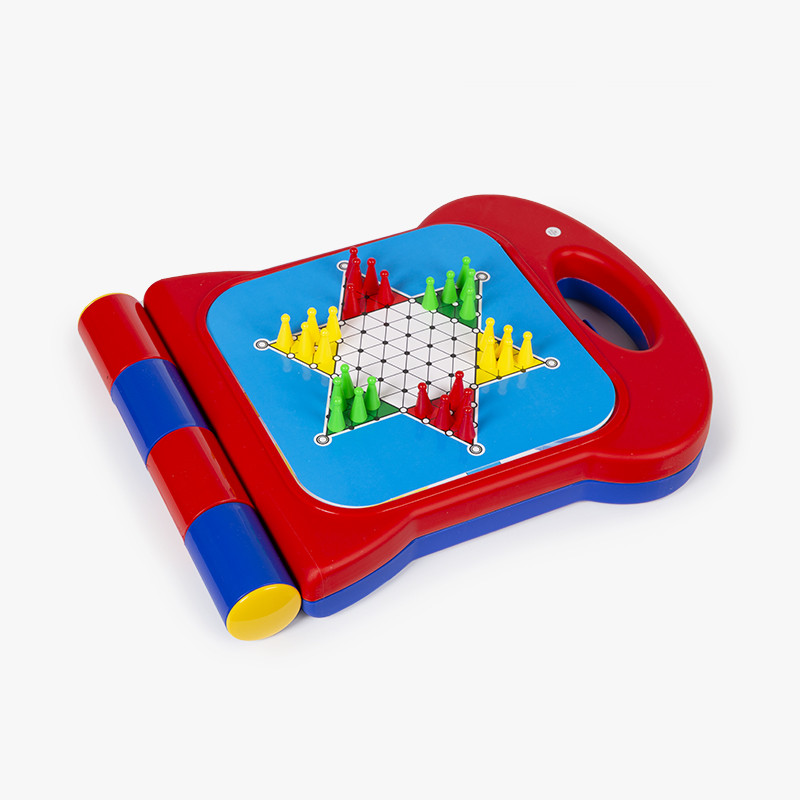 Grâce à ses plateaux réversibles, les enfants peuvent jouer à différents jeux traditionnels tels que les échecs, les dames, le jeu de l’oie, le ludo et d’autres jeux de parcours populaires.