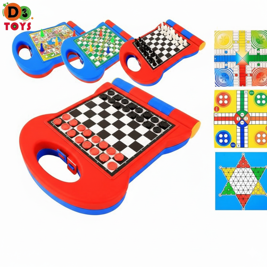 Ce jeu de société 5 en 1 est un ensemble ludique et éducatif conçu pour divertir toute la famille. Il regroupe plusieurs jeux classiques sur un plateau pratique avec poignée intégrée, facile à transporter et à ranger. Idéal pour développer la réflexion, la concentration et l’esprit stratégique des enfants tout en favorisant les moments de partage en famille ou entre amis.