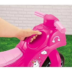 Son design attrayant avec des illustrations de licorne, des couleurs vives et une forme sportive stimule l’imagination des enfants tout en favorisant l’équilibre, la motricité et la confiance. La moto est ergonomique, confortable et adaptée aux petites mains pour une prise en main simple et agréable.