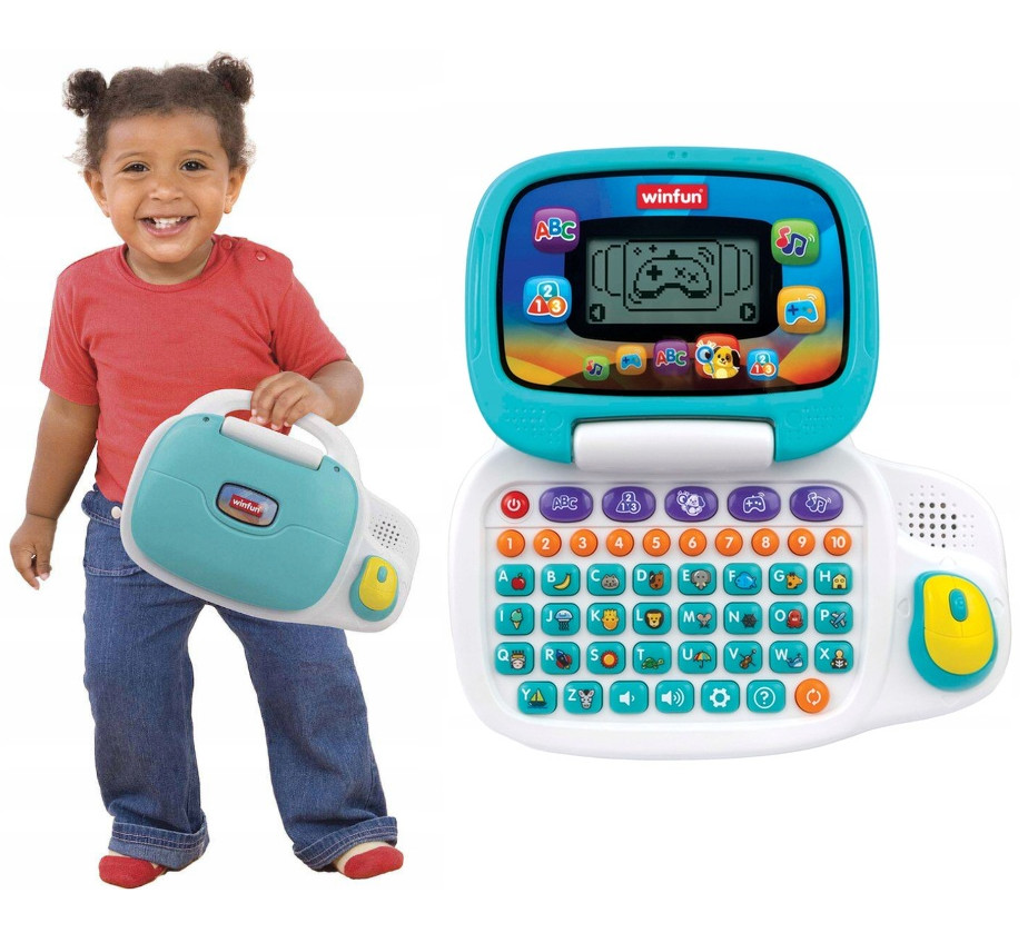 L’ordinateur éducatif bilingue Winfun est un jouet interactif conçu pour accompagner l’apprentissage des enfants dès 3 ans. Équipé d’un écran, d’un clavier complet, d’une souris et de nombreux boutons lumineux, il permet de découvrir les lettres, les chiffres, les mots, les sons et la musique en deux langues. Avec plus de 160 mots, phrases, chansons et mélodies, ce jouet stimule la curiosité, la mémoire et le développement cognitif tout en offrant une expérience ludique et éducative. Son design robuste et coloré est parfaitement adapté aux petites mains.