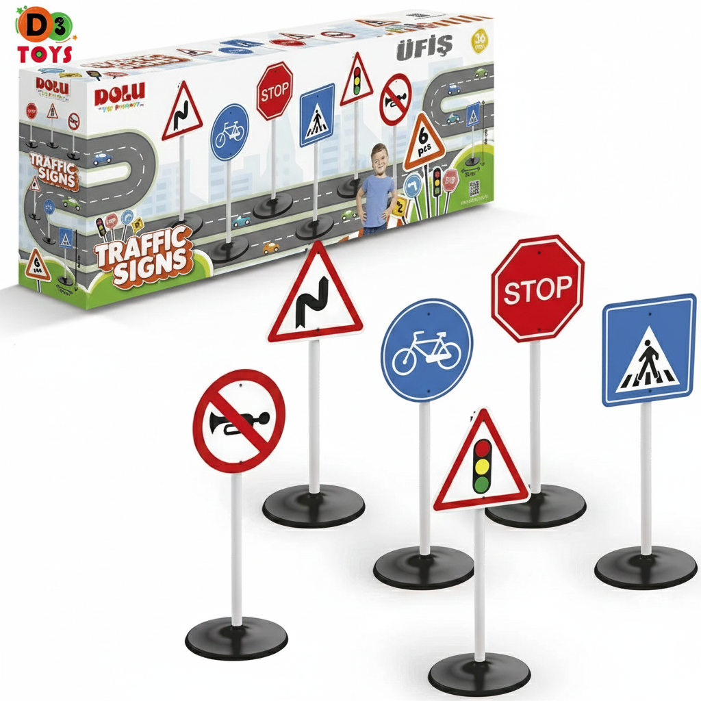 Le set de panneaux de signalisation routière Dolu est un jouet éducatif idéal pour initier les enfants aux règles de la circulation dès le plus jeune âge. Composé de 6 panneaux différents montés sur pieds stables, ce jeu permet de créer des parcours routiers réalistes pour voitures miniatures, vélos ou jeux de rôle. Conçu pour une utilisation en intérieur comme en extérieur, il aide les enfants à reconnaître les panneaux, comprendre leur signification et adopter de bons comportements routiers tout en s’amusant.