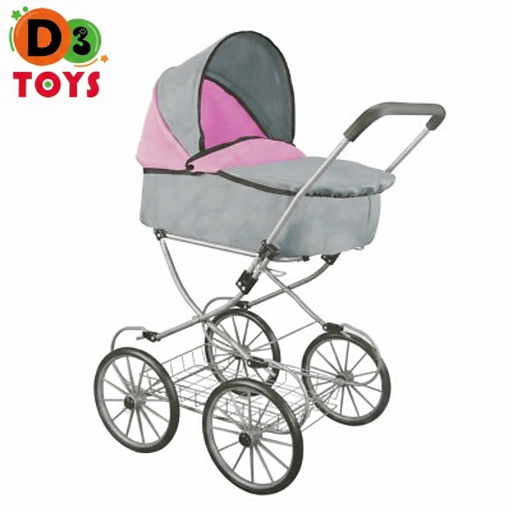 Poussette Classique pour Poupon – Gris & Rose
