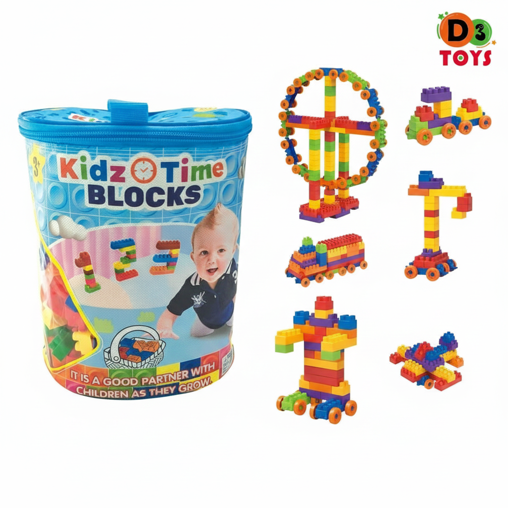 Le sac de blocs de construction éducatifs Kidz Time est un jouet idéal pour accompagner le développement des enfants dès le plus jeune âge. Grâce à ses blocs colorés et emboîtables, l’enfant peut créer une multitude de formes : véhicules, personnages, roues, structures et bien plus encore.