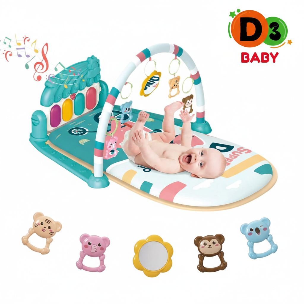 Le tapis est doux, confortable et sécurisé, offrant à bébé un espace idéal pour jouer, bouger et découvrir en toute tranquillité. Parfait pour le jeu sur le dos ou sur le ventre, il favorise la coordination, la curiosité et l’éveil musical.