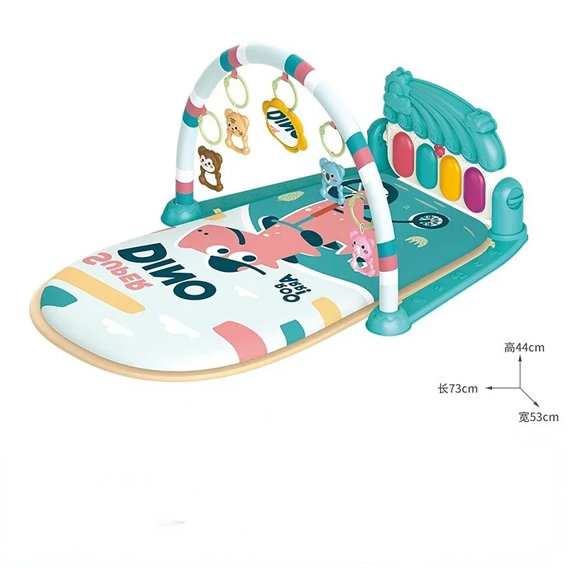 Tapis d’éveil musical pour bébé avec jouets suspendus et piano interactif, confortable et ludique.