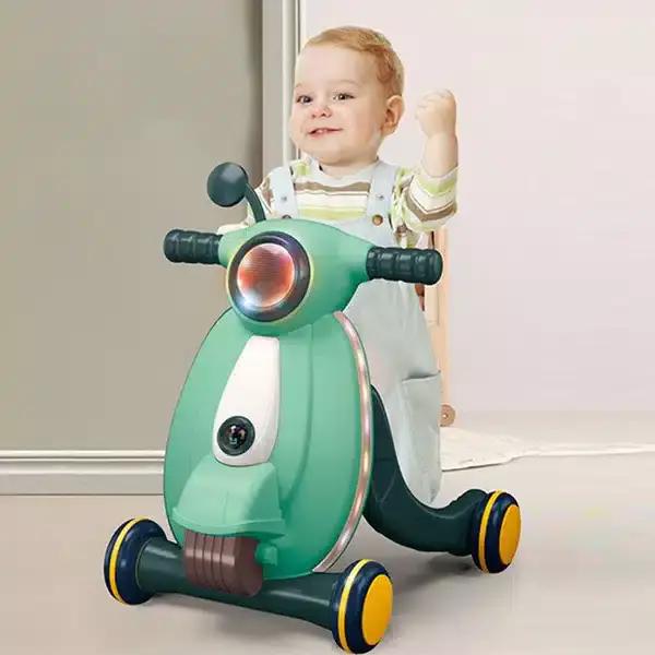 Inspiré du design d’un petit scooter, ce trotteur combine stabilité, interactivité et plaisir de jeu, tout en soutenant le développement moteur des enfants dès 12 mois.