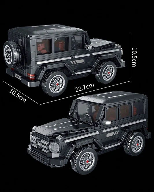 Voiture 4×4 RC à construire type LEGO, avec télécommande 2.4GHz et design SUV réaliste. Construction + vitesse = double plaisir !
